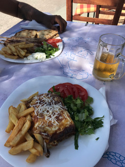 > Forramos nossa barriga antes de ir para o restaurante ver o pôr do sol.
