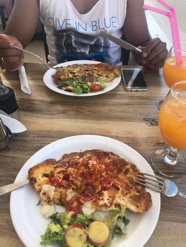 Esse foi o café da manhã mais incrível da vida, sério!!! Paramos no primeiro lugar que tinha uma vista legal e sentamos. Pedi um omelete com suco e estava delicioso. A conta deu: 25 euros.
