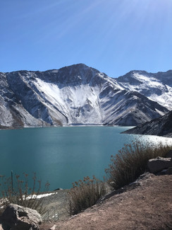 5ª parada: Este foi o momento de conhecer a Represa Embalse El Yeso. Como o local estava com neve, não foi possível acessa-lo com veículos, tivemos que parar a van em um ponto distante e ir andando por uns 30 minutos. Andamos na neve, com um frio terrível (pegamos -6 graus), um vento muito frio...mas a vista VALEU MUITO A PENA!